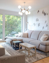 Diese exklusive Wohnung mit Dachterrasse im Grünen wurde auf Wunsch des Kunden modern, gemütliche und mit Farbakzenten eingerichtet. Der freie Blick ins Grüne wird hier als zentrales Raumelement bespielt und spiegelt sich in der Verwendung von natürlichen Materialien und Farben wider. Gemeinsam mit den Vorstellungen des Kunden wurde hier ein gemütliches und funktionales Gesamtkonzept erstellt.